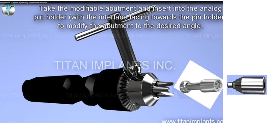 Insert the modifiable abutment into the interface of the analog and tighten the analog into the analog/pin holder to modify the abutment to the desired angle.